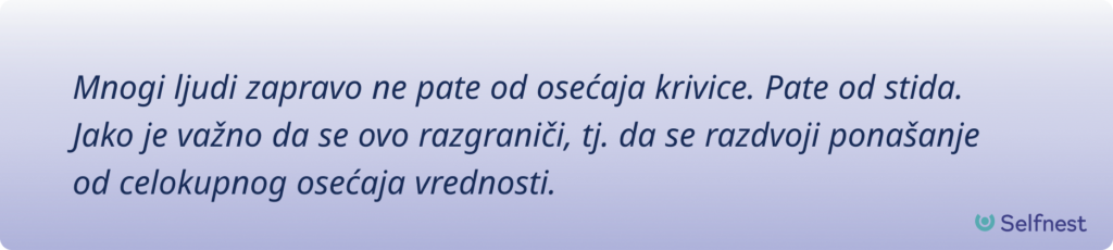 Mnogi od nas su tokom detinjstva, kada urade nešto što je bilo neprihvatljivo, imali priliku da čuju “Jao, što si nevaljao, bezobrazan si, stidi se, nisi dobar”. To se neretko preslikava i na odraslo doba u kojem svest o lošem ponašanju lako postaje uverenje – Ja sam loš.